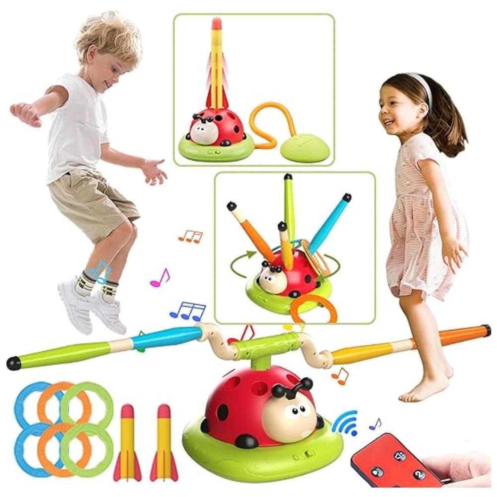 The 3 in 1 musical jump toy for kids is a versatile and fun-filled activity set designed to keep children entertained for hours. This toy offers three exciting games in one package: a rocket launcher, spinning pole-hopping game, and spinning ring toss game. Perfect for kids ages 3-7, this toy encourages physical activity, coordination, and teamwork, making it an ideal addition to any playtime routine. The multi-functional design makes it perfect for both indoor and outdoor play, ensuring that kids can enjoy it anytime, anywhere.