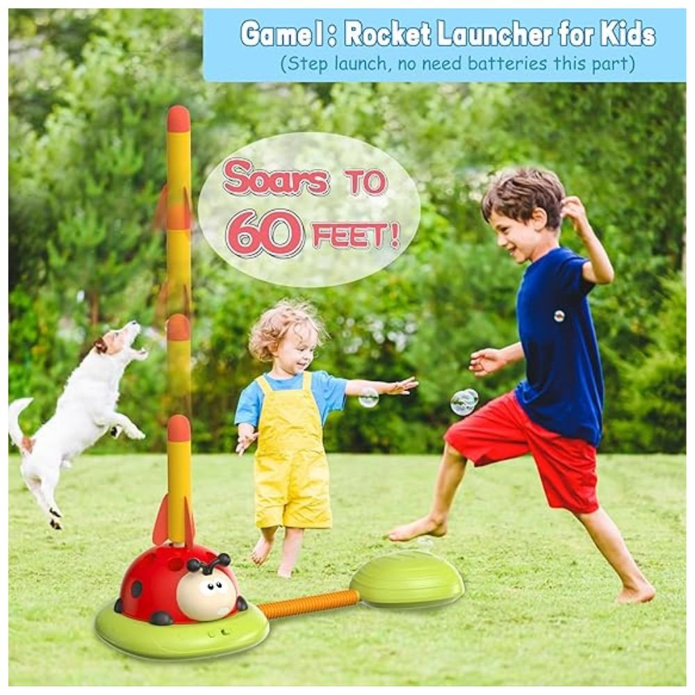 The rocket launcher is the first game option, where children stomp on the launcher to send foam rockets flying through the air. The rocket launcher requires no batteries, allowing kids to run, jump, and stomp the rocket to launch it. This game helps develop motor skills and encourages active play, making it perfect for kids who love to be energetic and engage in outdoor activities. It’s safe for children aged 3 and up, providing fun without any worries of injury.