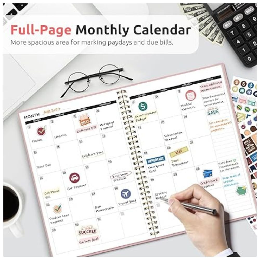 Enjoy spacious monthly calendars to mark important dates, bills, and paydays. Personalize your planner with 3 cute sticker sheets for a fun budgeting experience.